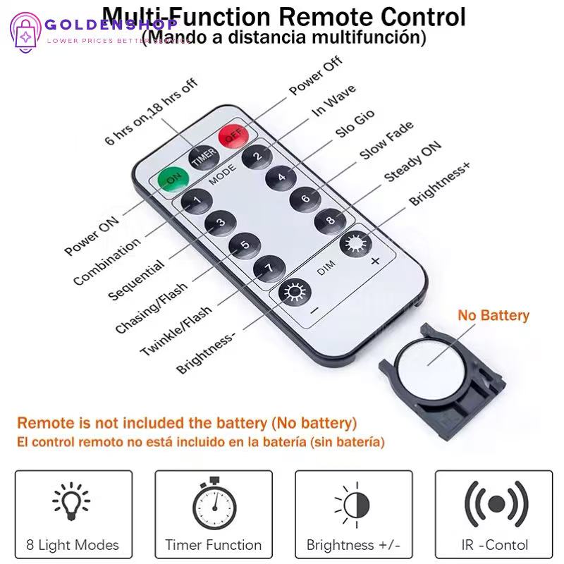 Kontroler sa 7 promena načina i 1 način rada ustaljenog rada. Pritisnite dugme na kontroleru da biste odabrali 8 različitih svetlosnih efekata.
