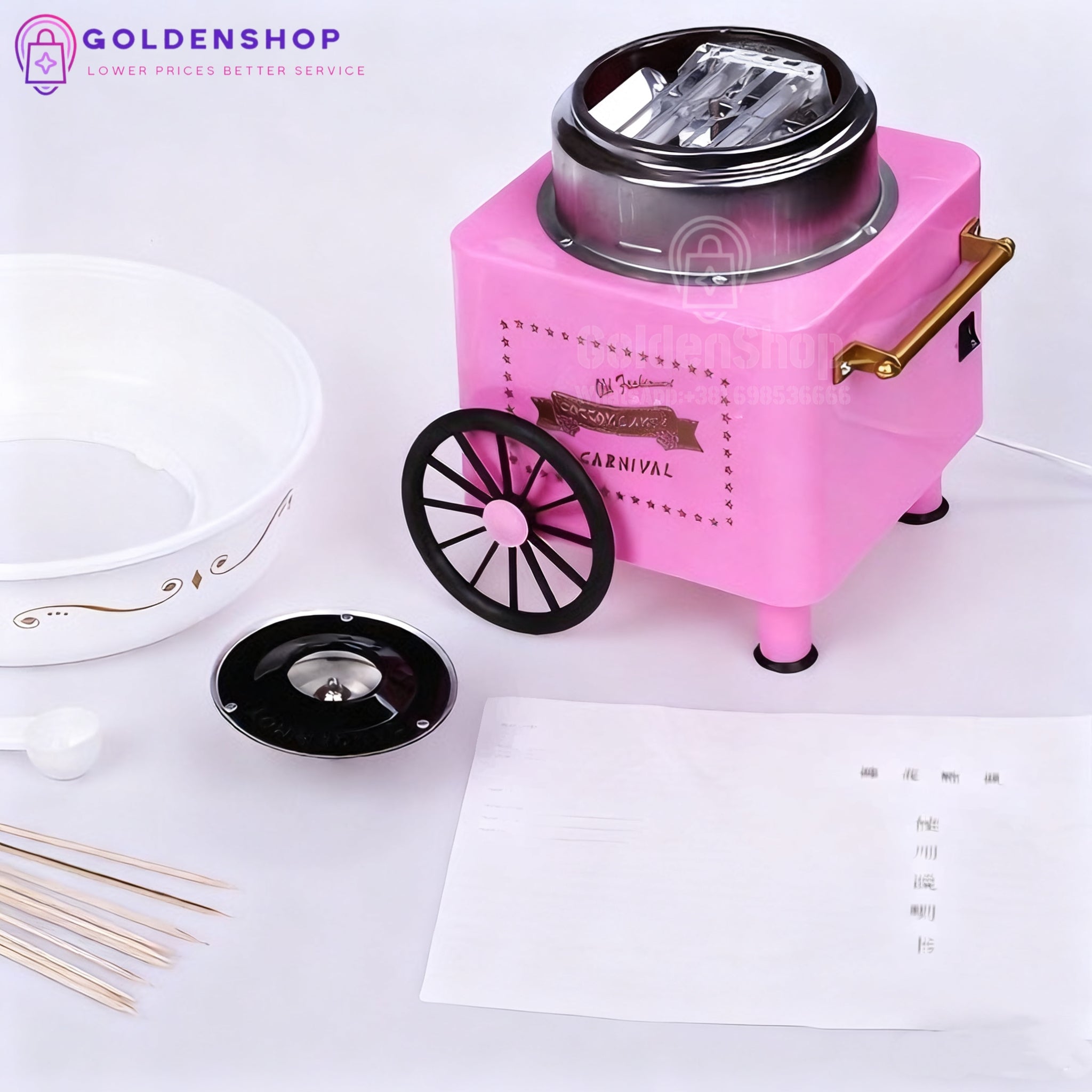 Ovaj fantastičan aparat stvara mekane niti šećerne vune od običnog šećera ili voćnih bombona u raznim bojama. Izrađen je od visokokvalitetnih materijala, što garantuje dugovečnost i pouzdanost. Princip rada je jednostavan: mašina zagreva šećer ili bombone, a zatim se vruća masa vrcanje pretvara u tanke, mekane niti koje se, brzim hladenjem, savršeno namotavaju na drveni štapić.