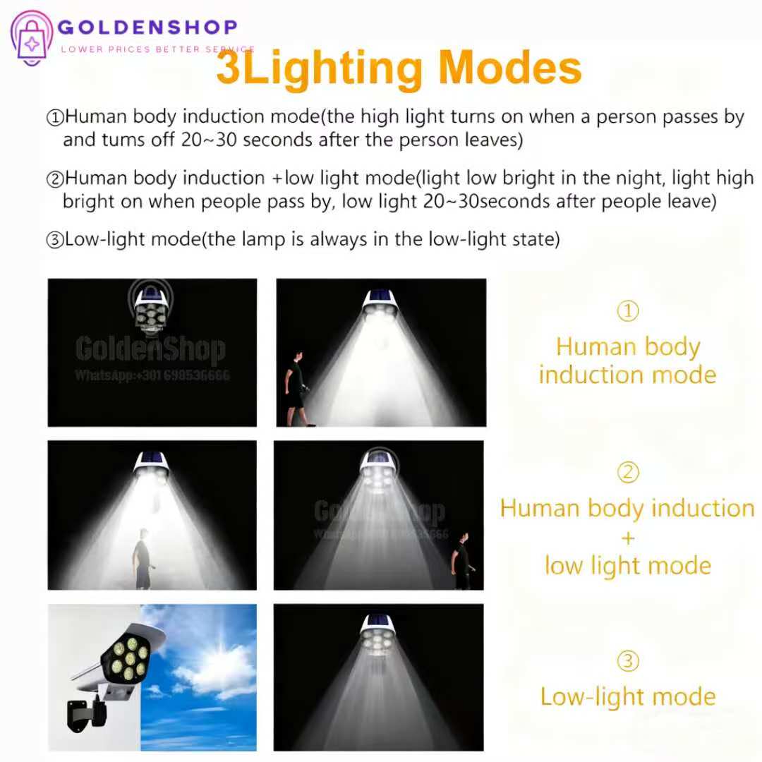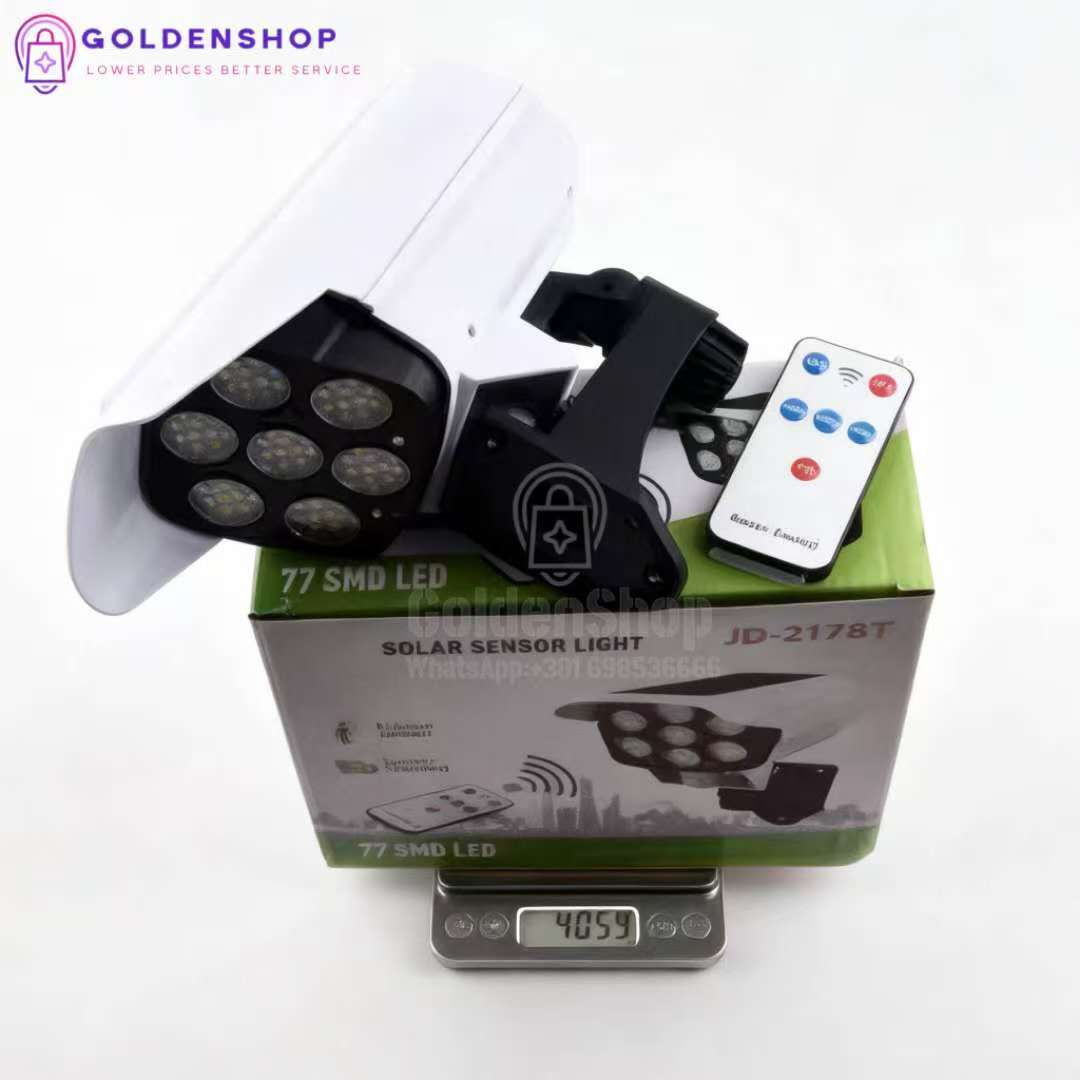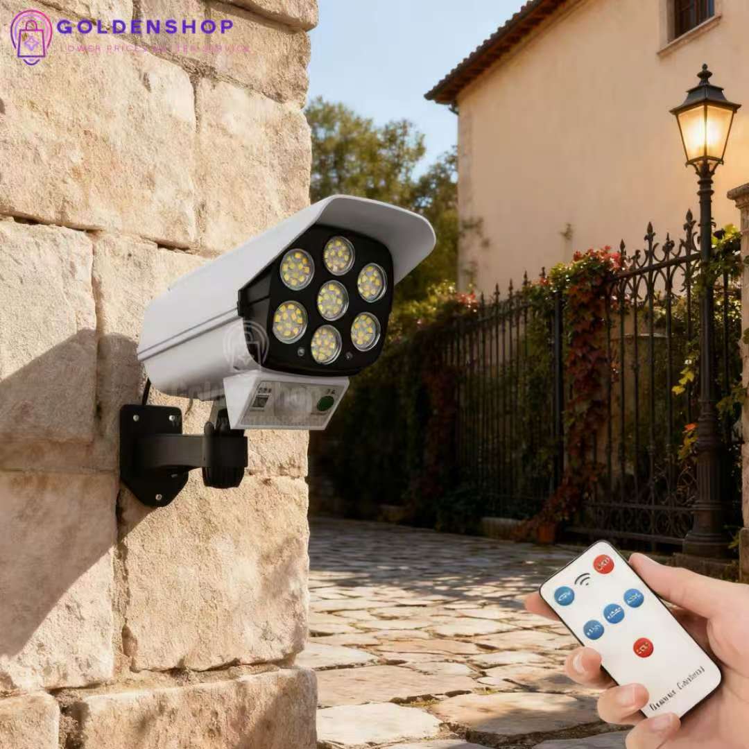 Solarni zidni vodootporni reflektor sa daljinskim upravljačem, idealan za Vaše dvorište. Pored svetla koji pruza moze Vam sluziti i kao lažna kamera . Držite vaše kućno imanje na sigurnom i od uljeza.