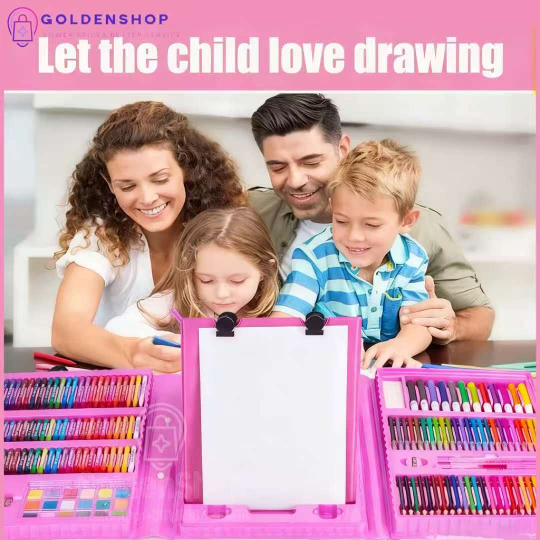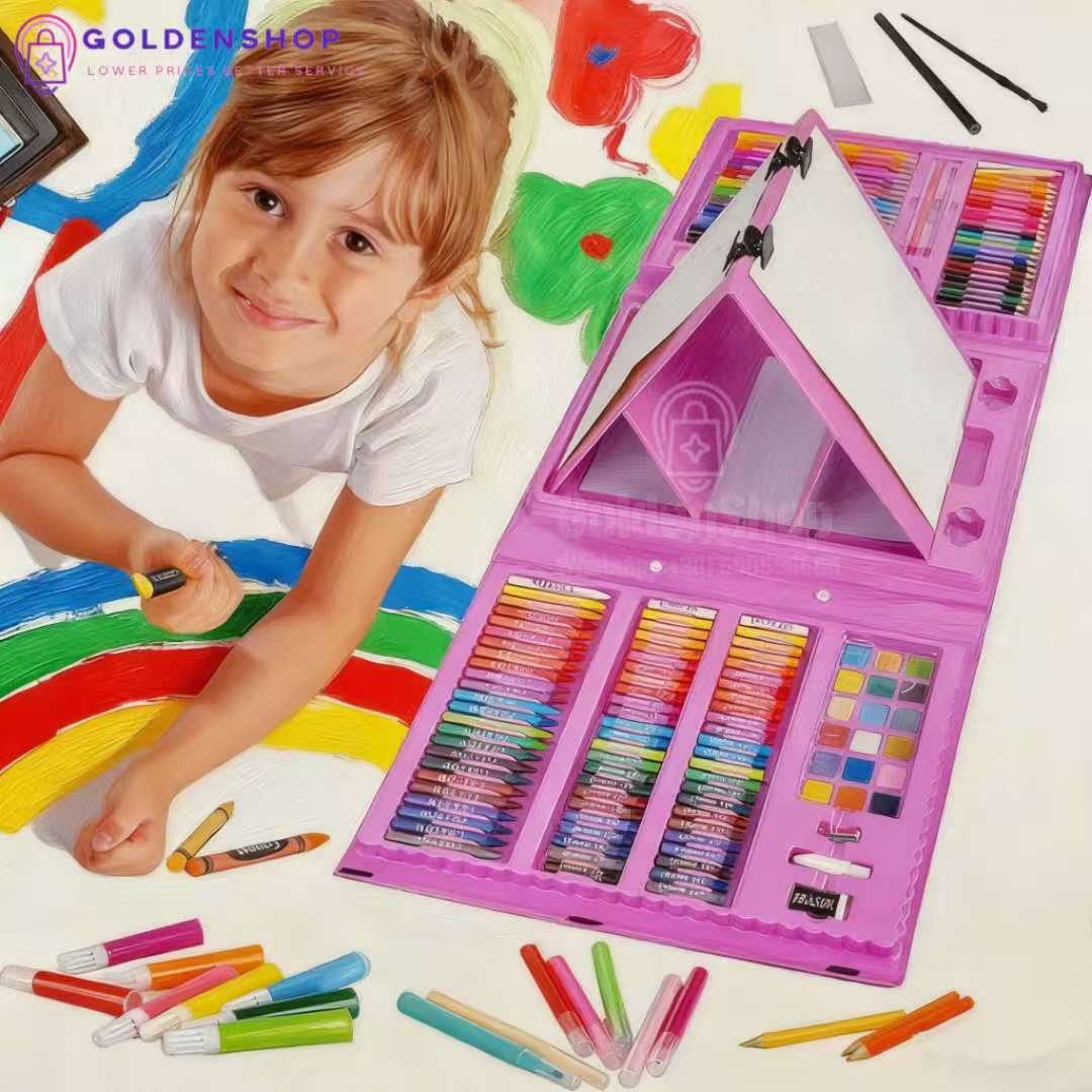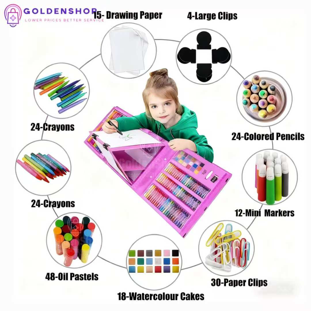Uz pomoć ogromnog izbora bojica, flomastera, uljanih bojica, voštanih bojica, akvarel boja, rezača, lepks, korektora, gumica, A4 listova, lako ćemo kreirati najsofisticiranije, kreativne i originalne radove. Savršen umetnički set za decu i početnike.