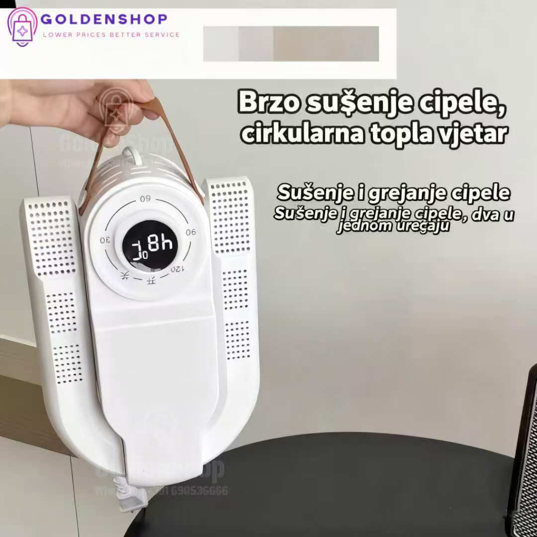 1. Efikasan i prenosiv: Naša sklopiva mašina za sušenje cipela je pametna nome uređaj koji nudi efikasno sušenje i dezodorisanje. To brzo raspršuje vlagu zahvaljujući cirkulaciji toplog vazduha odlika. Trodimenzionalni protok toplog vazduha od 360° obezbeđuje temeljno sušenje uz inhibiranje rasta bakterija sa pomoć ružine soli. Sa tajmerom od 120 minuta i inteligentnim kontrola temperature, ova kompaktna i sigurna mašina za sušenje cipela je savršen za upotrebu u vašoj spavaonici ili kod kuće