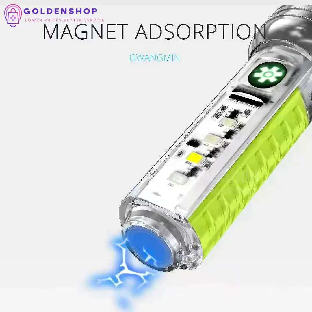 Lampa poseduje bočno svetlo sa belim, crvenim i plavim LED diodama, pružajući dodatnu funkcionalnost za različite situacije. Ugrađena je litijum-jonska baterija (14500, 500 mAh) koja se puni preko modernog USB-C kabla, što omogućava brzo i praktično punjenje.