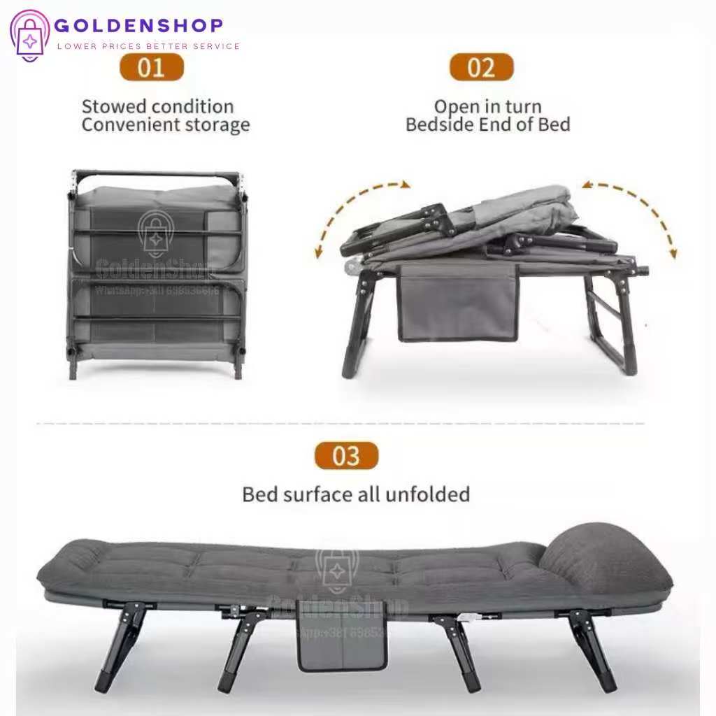 Sklopivi krevet na rasklapanje je dizajniran sa 3-u-1 bočnim džepom, lako za skladištenje ili pristup stvarima. Krevet na sklapanje ima podignuti jastuk, koji pruža udobnu podršku za vrat i glavu.