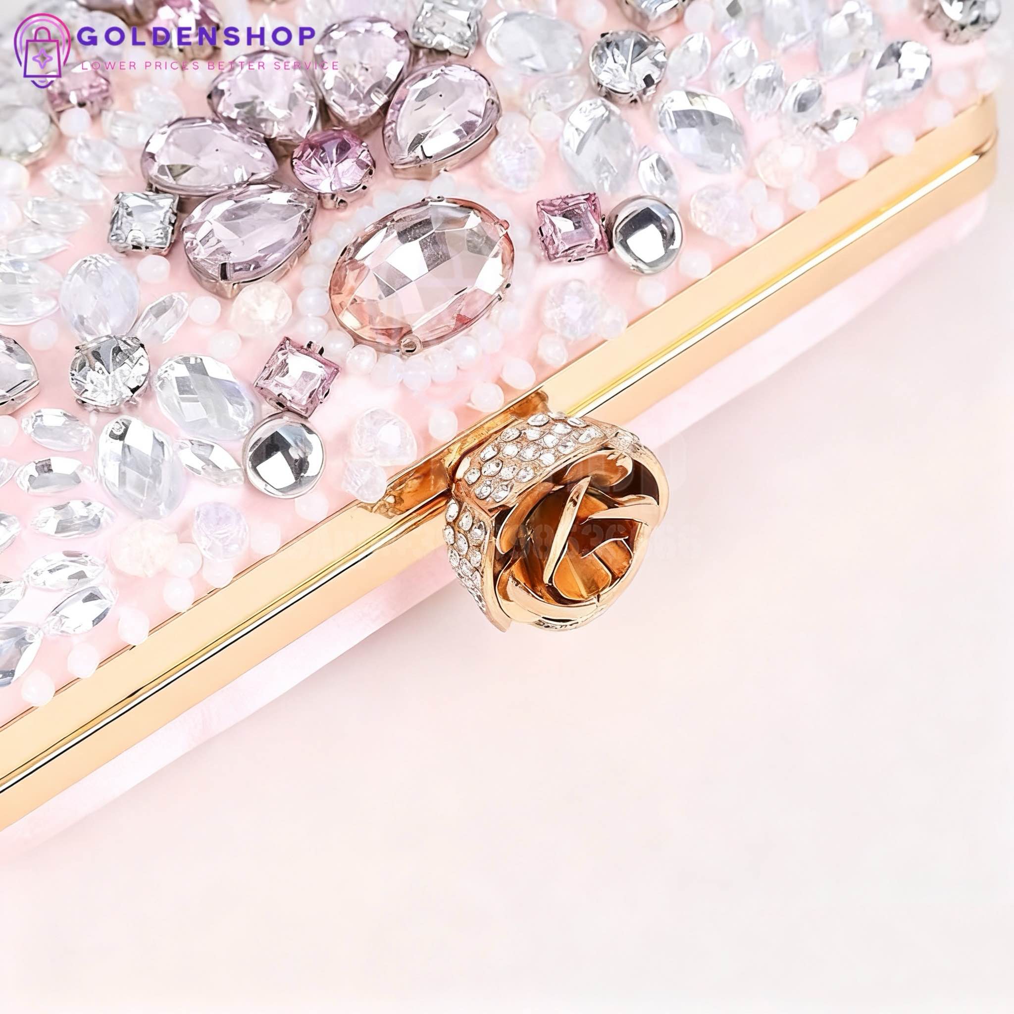 To je zapanjujuće remek-delo koje lako spaja eleganciju i trendi stil. Opremljena sa sofisticiranim kristalima i detaljnim ukrasima, ova torbica je prava atrakcija koja garantuje da će napraviti snažnu modnu izjavu gde god da krenete.