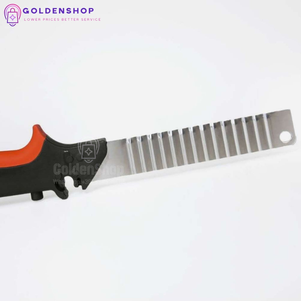 - Makaze su izrađene od nerđajućeg čelika sa plastičnom drškom i mogu se koristiti za sitno seckanje bilja, krompira, šargarepe, luka i ostalog povrća, mesa direktno u tiganj ili lonac
