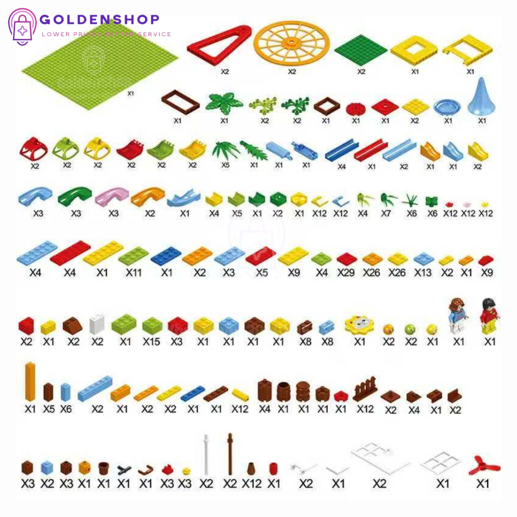Set se sastoji od 496 delova različitih boja i oblika, koji omogućavaju izgradnju dinamičnog parka sa različitim tematskim elementima. Dete može da gradi, menja i unapređuje svoj park po sopstvenoj mašti.