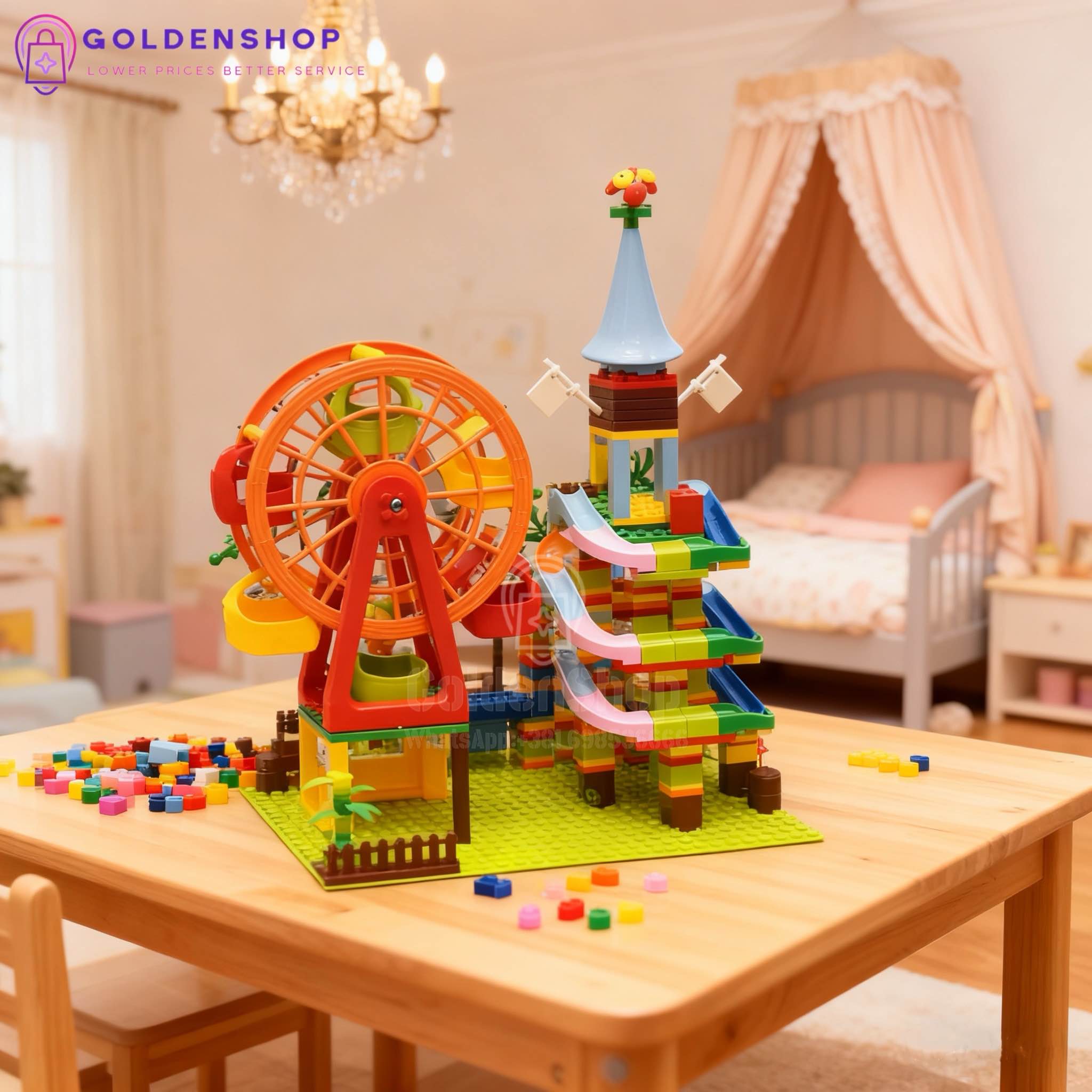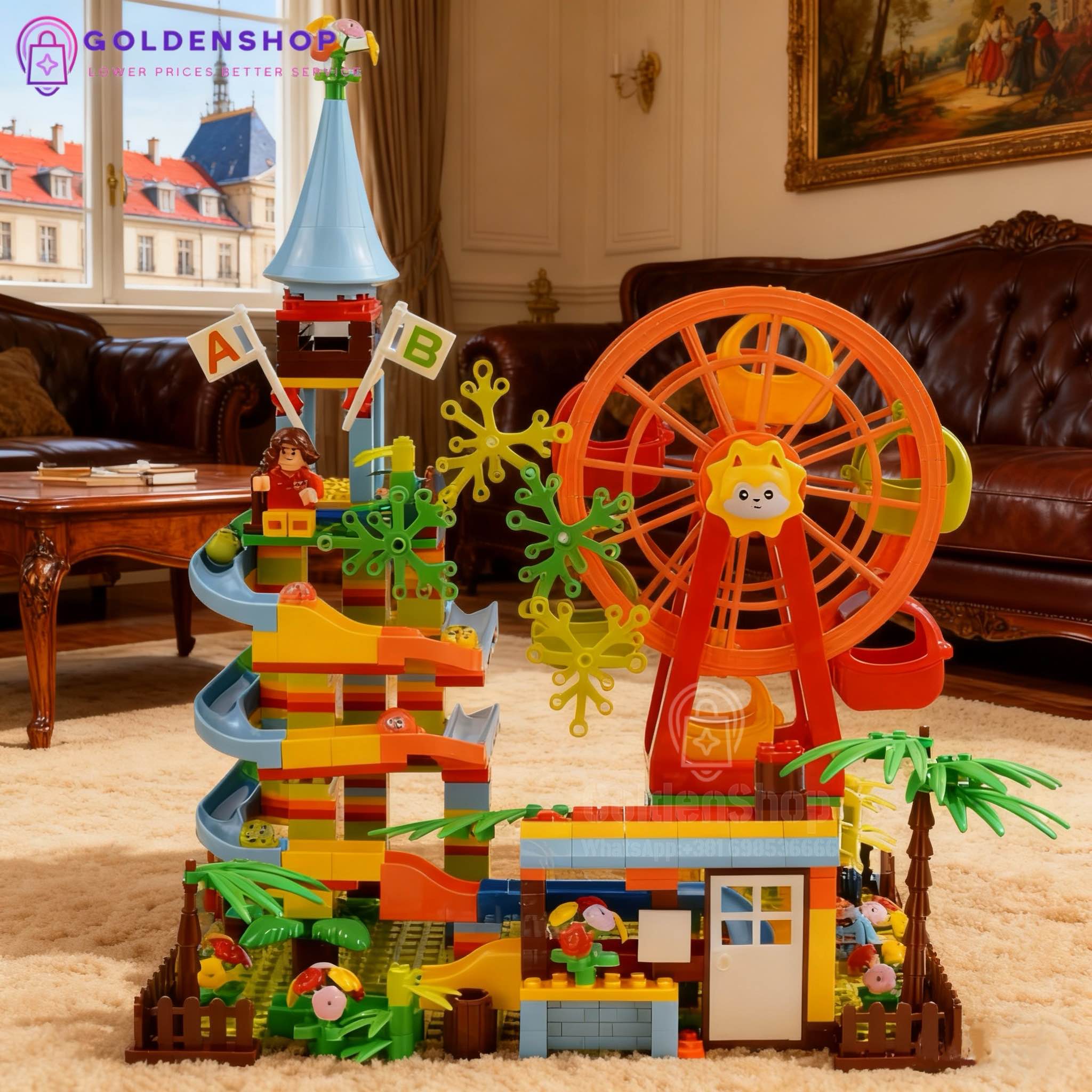 Ova kreativna igra od kockica omogućava vašem detetu da postane kreator sopstvenog zabavnog parka – sa panoramskim točkom, prodavnicom i uzbudljivom stazom. Svaki detalj je prilika za novu avanturu!
